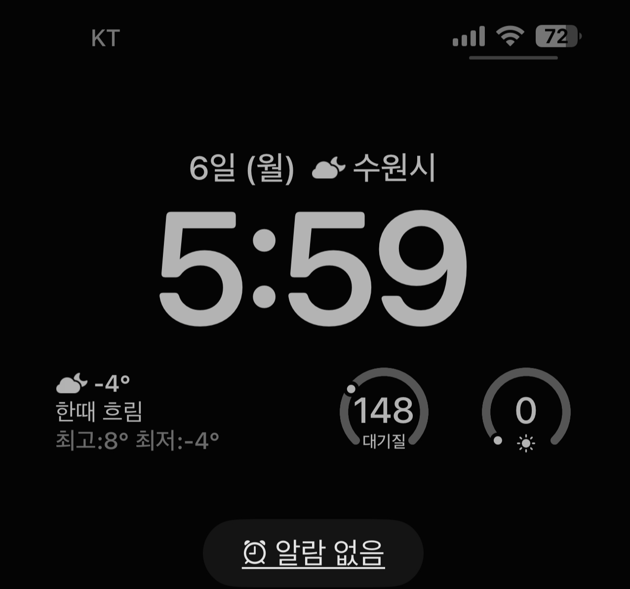 알람이 울리지 않고 먼저 깨서 알람을 들었던 것일까?