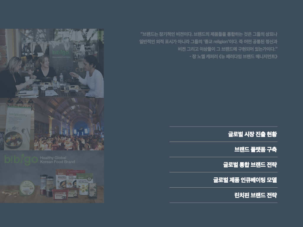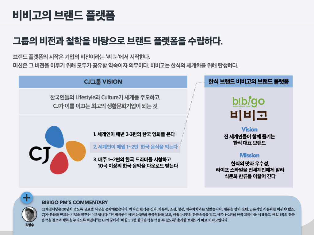 2016년 전)곽정우 상무와 그의 동료들이 함께한 비비고 브랜드를 소개한다.