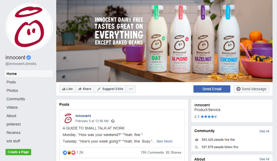 또 하나는 영국 브랜드인 이노센트(Innocent)입니다. 이 제품은 정말로 훌륭합니다. 베이스 제품에도 다른 차원의 커뮤니케이션을 추가했기 때문이죠. 진정한 것이 무엇인지를 아는 브랜드입니다. 거짓말을 해서도 과장해서도 안 되는 것이죠. 사람들이 제품을 통해서 그들이 기대한 것을 얻고 훌륭한 경험을 하도록 해주면 됩니다.