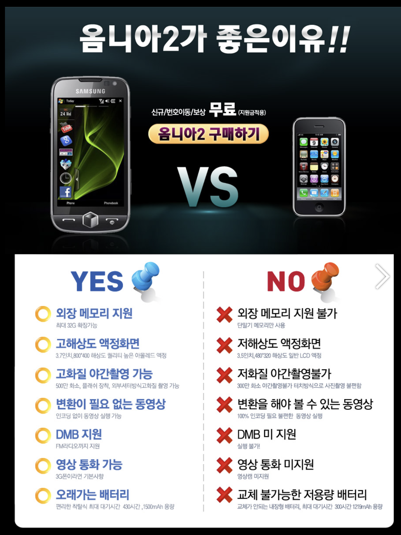 이 당시에 우리나라 소비자의 핸드폰 소비 기준은 스펙이었다. 삼성은 스펙으로 아이폰을 이렇게 누르려고 했다.