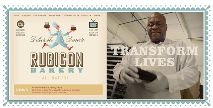 또 하나의 예를 들어보면, 캘리포니아에 가면 여러 카페와 슈퍼마켓에서 루비콘(Rubicon)이라는 베이커리 브랜드가 있다. 1970년대 미국 캘리포니아 주 리치먼드 지역은 48%라는 살인적인 실업 사태를 기록하고 있었고, 이 지역에서 장애인과 노숙인의 자활을 돕는 비영리기관인 릭오브리는 직업 소개 및 훈련 프로그램을 운영했다. 하지만 일자리는 기술의 인지 여부에 의해 만들어지는 것이 아님을 깨닫고 ‘빵을 팔기 위해 사람을 고용하는 것이 아니라 사람을 고용하기 위해 빵을 판다’ 는 모토를 가지고 1973년 루비콘 베이커리를 설립했다.