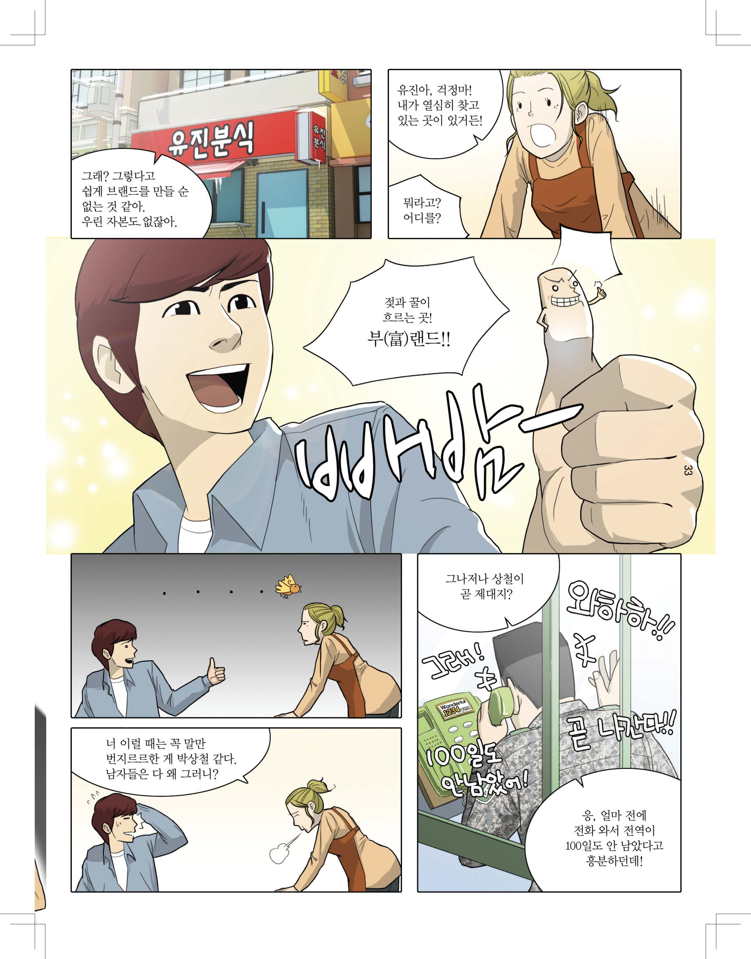 만화는 단순한 픽션(Fiction)이 아니다. 이미지, 대사, 상황(Context)이 결합되어 브랜드가 현실 속에서 어떻게 작동하는지를 더욱 사실적으로 전달할 수 있다. 이번 호는 브랜드가 ‘부(富)랜드’—즉, 성경에서 말하는 ‘젖과 꿀이 흐르는 땅’과 같은 이상적인 브랜드로 성장하는 과정을 탐구한다.