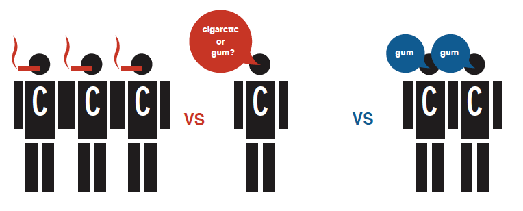 리글리스의 Wrigley’s의 츄잉 껌은 완전히 다른 시장을 겨냥하여 담배의 대안으로 자리매김하였습니다.