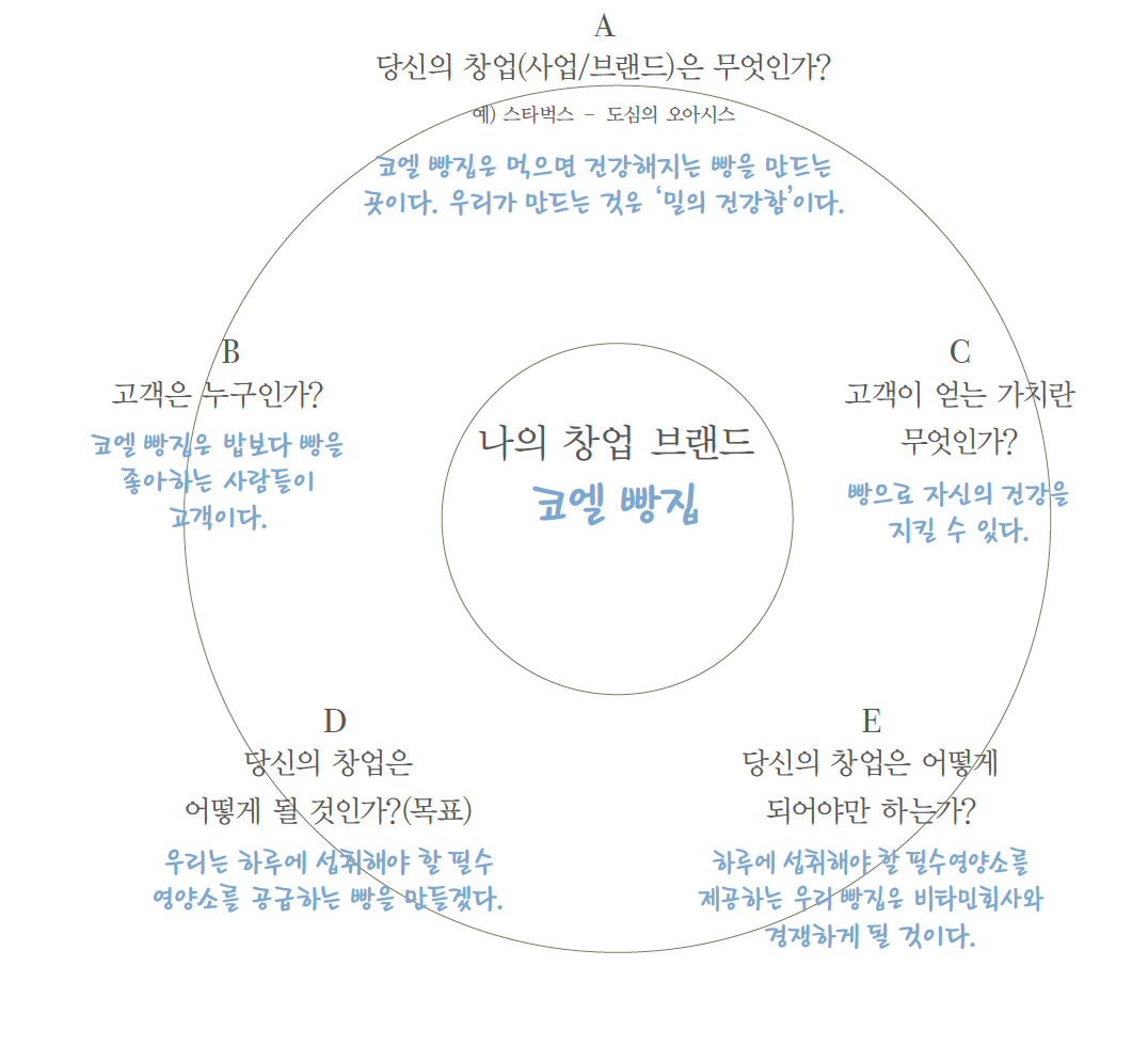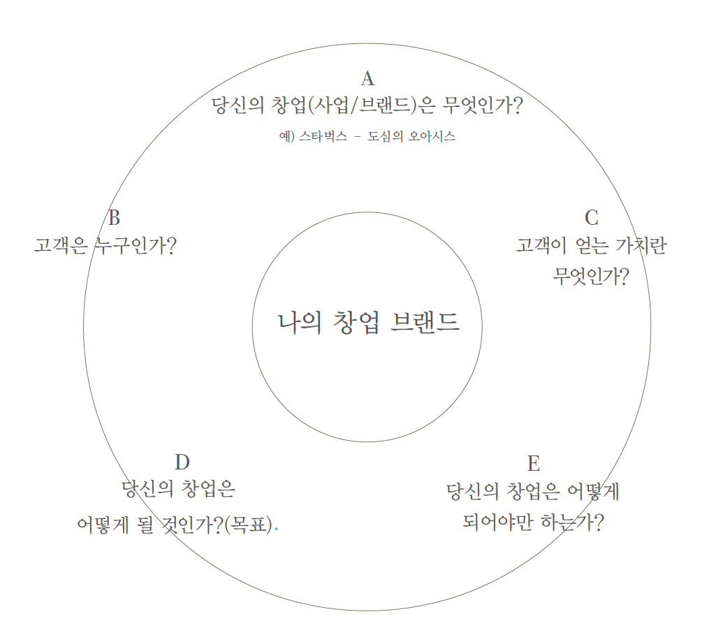 창업의 이유와 가치, 그리고 브랜드의 실체에 대해 파악하도록 이끈다. 특히 '브랜드 창업'이라는 개념을 쉽고 완전히 이해하도록 사례와 설명을 중복시켰다.
