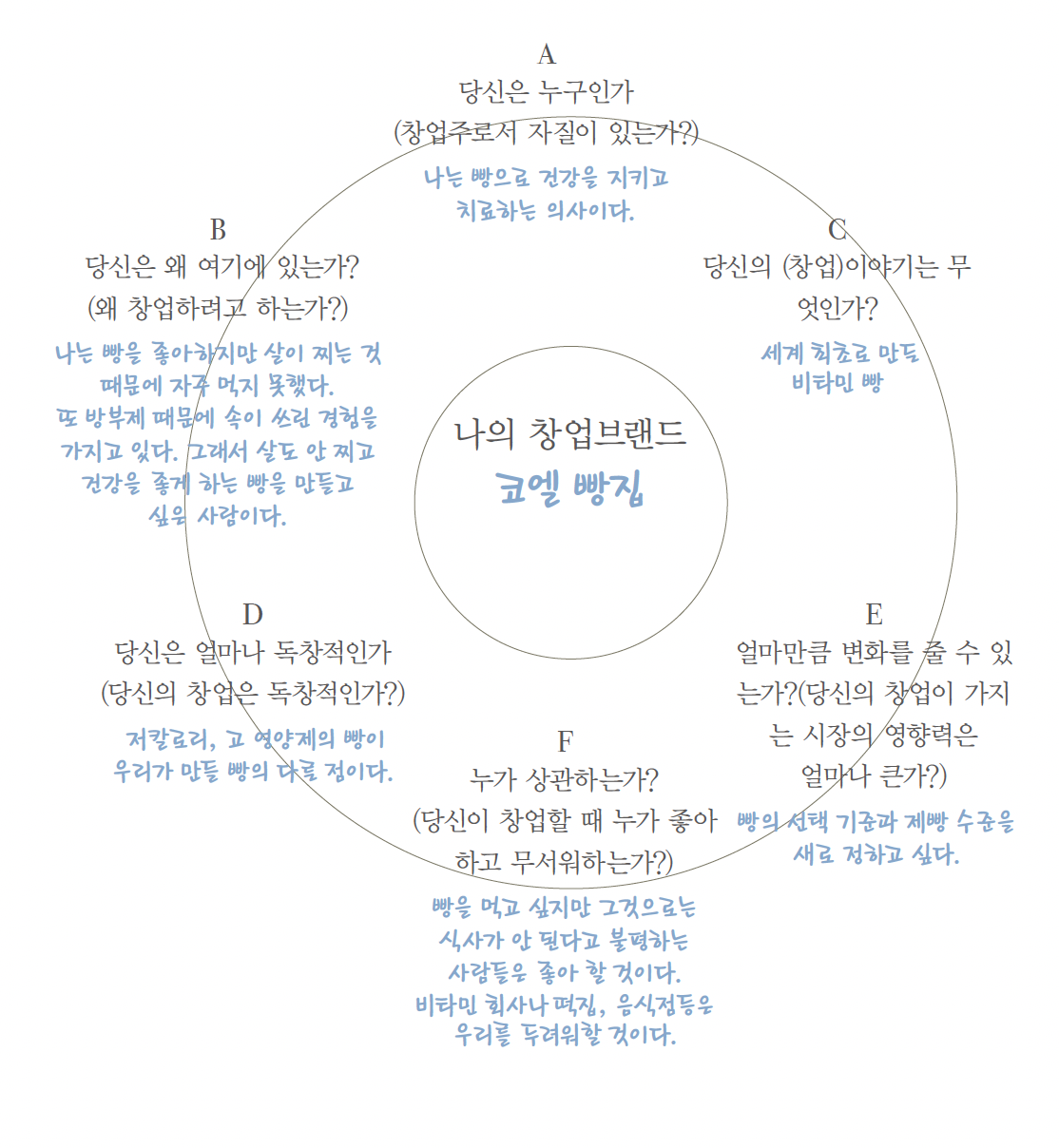 예를 들어 A질문에 대한 대답에서 창업 아이템이 빵가게라고 해서