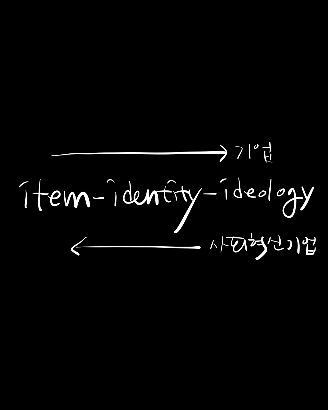 일반 기업은 보통 Item을 만들고, 브랜드명·디자인으로 Identity를 구축한 뒤, 브랜드 메시지로 Ideology를 광고 슬로건처럼 만듭니다.