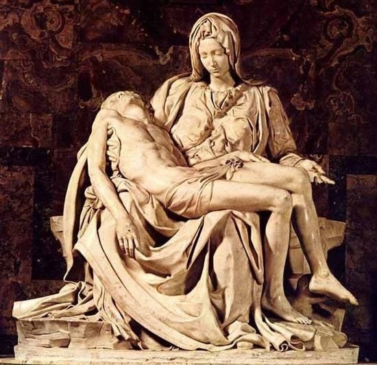 미국의 종교학자 로이 블레너가 쓴 《시스타나 예배당의 비밀》에 보면 미켈란젤로는 “나는 모든 대리석 덩어리 속에서 신체 각 부위의 자세와 움직임까지 이미 완벽하게 모양이 잡혀있는 형상을 마치 내 눈 앞에 서있는 것처럼 또렷이 본다. 나는 내 눈이 그것을 보듯 다른 사람들의 눈에도 보이도록 그 아름다운 유령을 가두고 있는 거친 벽을 깎아 내기만 하면 된다”고 말했다. 그는 스승이었던 마르실리오 피치노에 의해 영향을 받은 플라톤적 사고로 조각을 하고 있었던 것이다. 그래서 그에게 미술은 창조하는 것이 아니었으며 오히려 이미 존재하지만 감추어져 있는 절대적 아름다움을 드러내는 작업으로서 이러한 예술적 정체성은 그의 조각들을 통해 알 수 있다.