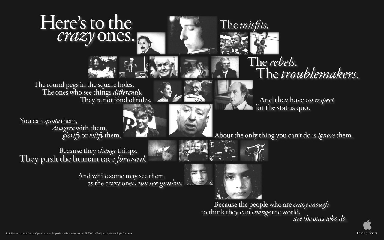 - 1997년 애플 광고에 등장한 애플 직원들이 직접 쓴 시