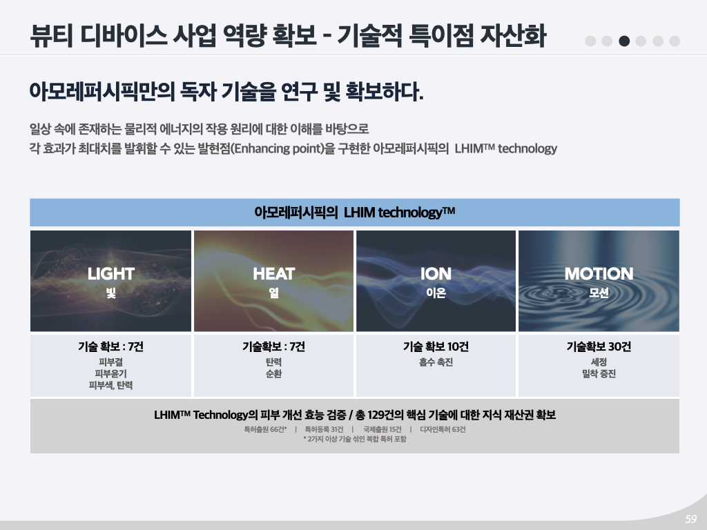 “에너지를 활용한 뷰티 디바이스라고 하면, 낯선 첨단 기술처럼 느껴질 수 있습니다. 하지만 저희가 뷰티 디바이스를 연구하며 깨달은 점은 이 또한 자연의 에너지라는 것입니다. 본래 아모레퍼시픽은 자연 본연의 것에서 아름다움을 발견한다는 철학으로 시장을 개척해왔고, 유럽 시장과 대등한 수준의 성장을 이뤄왔죠. 지금까지 보이는 자연을 연구해왔다면, LHIMTM Technology는 보이지 않는 자연으로 그 영역을 확장하려는 시도입니다. 그래서 레이저 기술이나 의료기기의 상표명으로 일컬어졌던 뷰티 기술을 아모레퍼시픽의 관점으로 자연의 에너지라 재정의했습니다.”
