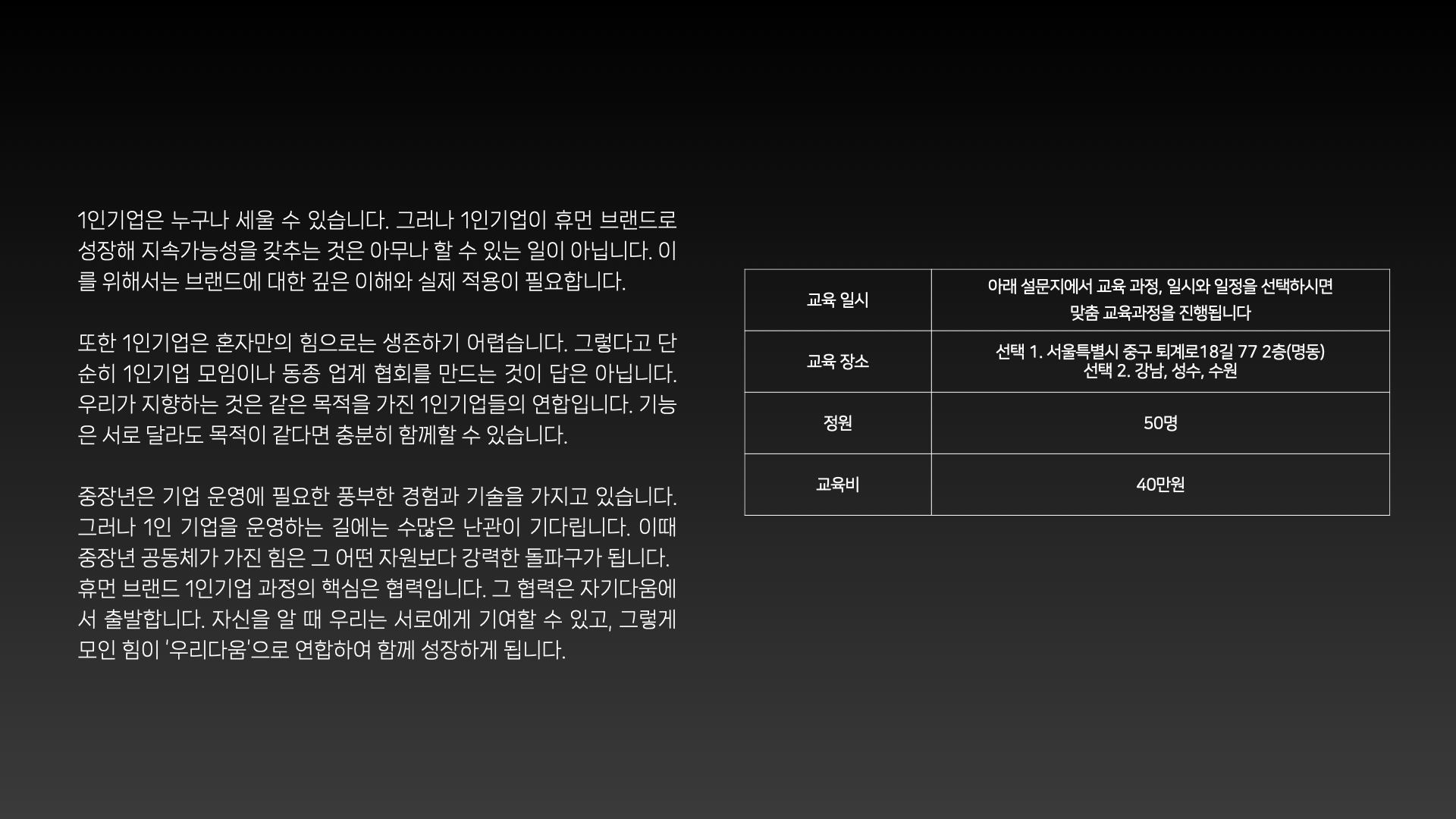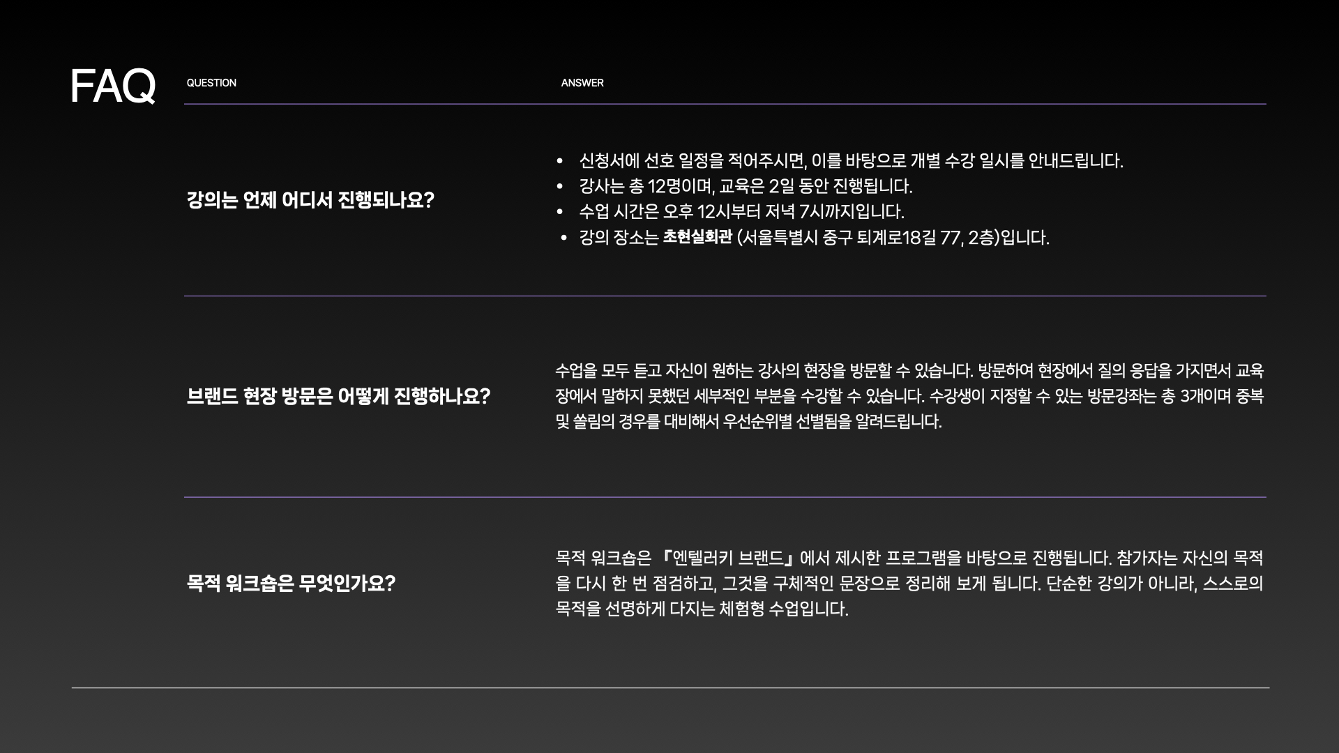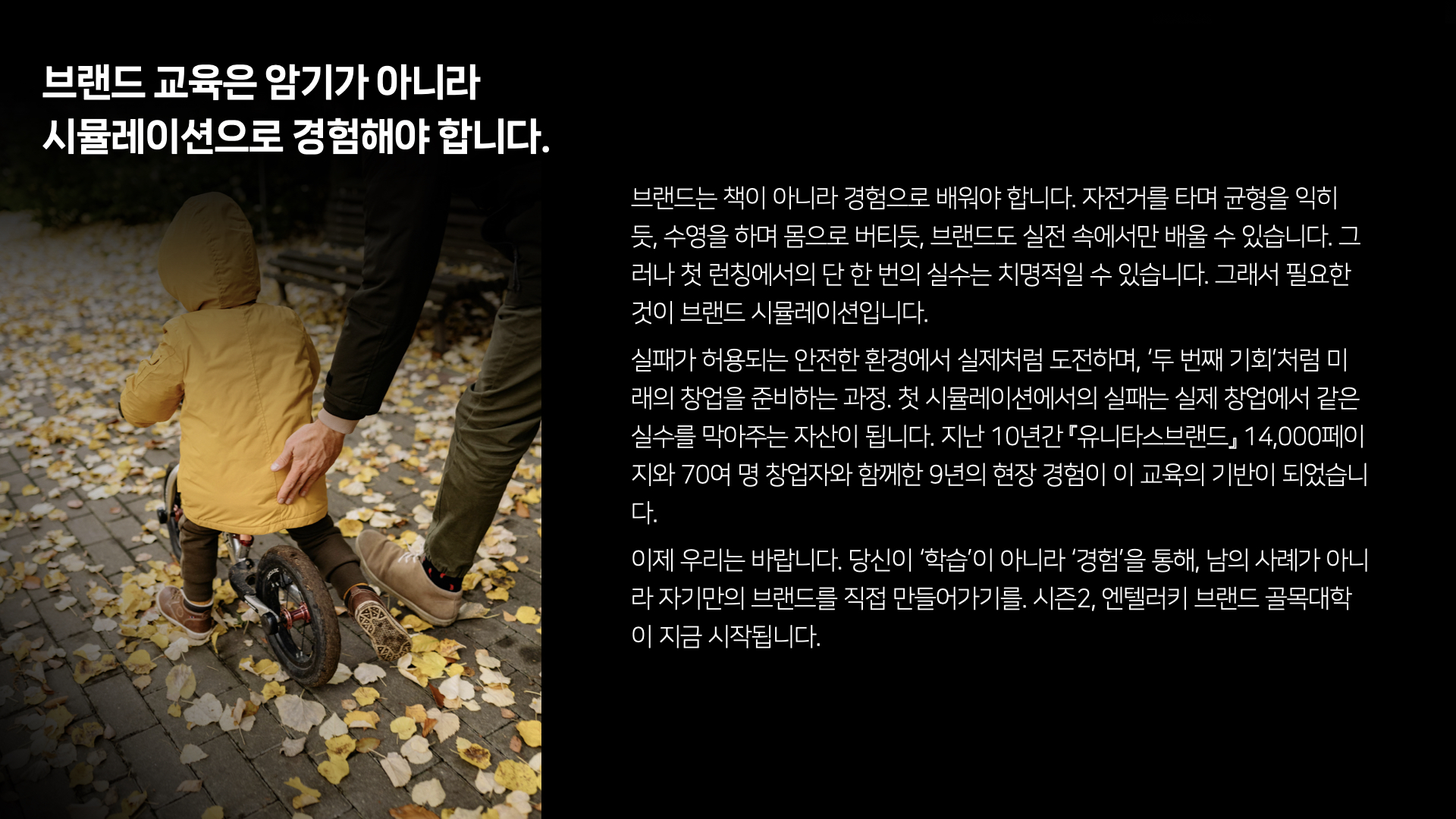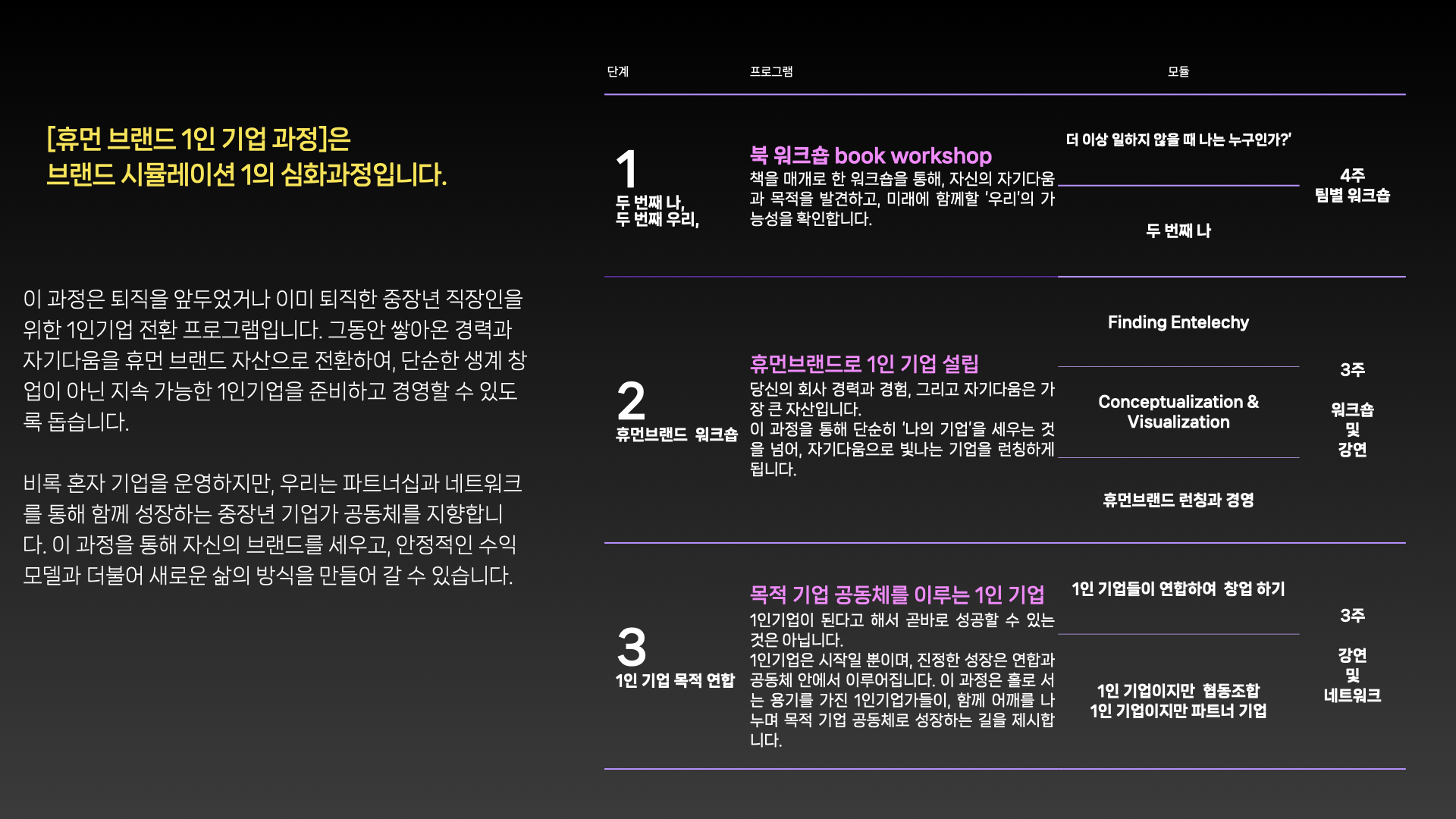 안녕하세요. 엔텔러키 브랜드 골목 대학입니다. 아래 핵심원칙을 숙지하시고, 3개 과정 중 참여를 희망하시는 프로그램을 선택하신 뒤, 화면 하단의 “다음” 버튼을 눌러 신청을 진행해 주시기