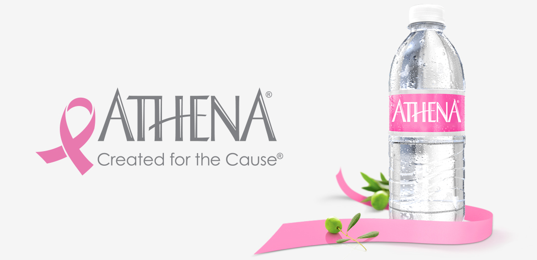 아테나 Athena 워터 브랜드는 유방암 연구에 판매 순이익의 전액을 기부합니다.