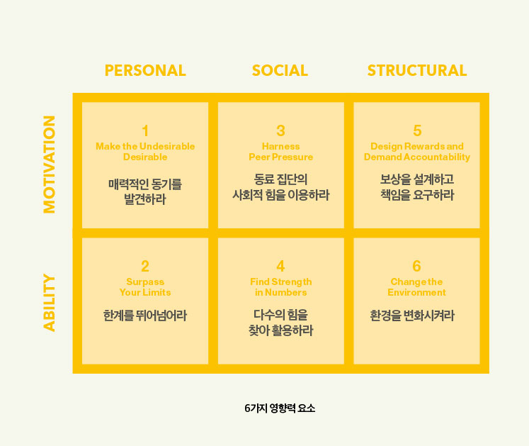 행동 변화를 이끌기 위해서는 6가지 요소를 모두 배워야 합니다.