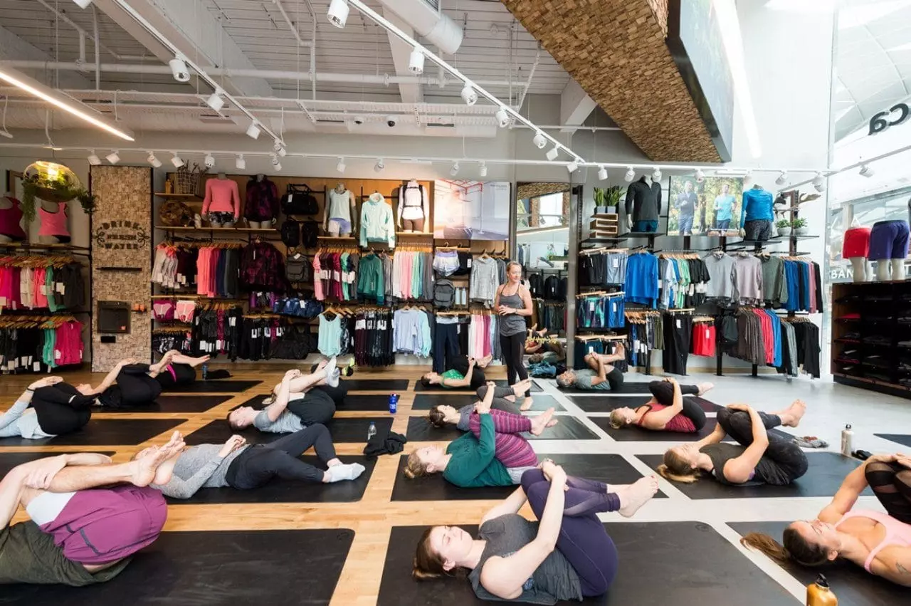 룰루레몬 매장에서 열렸던 요가 클래스. Yoga class at Lululemon at Westfield London, Image &ndash; Drapers