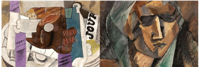 피카소의 창의성은 바로 이 지점에서 발현되는데, 여러 각도에서 하나의 대상을 보고 종합적으로 판단하는 원리를 발견하여 입체파라는 새로운 미술 사조를 창조한 것이죠. 입체주의란 3차원의 물체를 2차원의 캔버스에 입체 형태로 묘사하는 것입니다. 수많은 단면을 해체한 다음 기하학적 형태로 재구성한 그의 그림은 미술의 성역을 침범해 과감히 회화의 전통을 깬 세기의 사건이었죠.