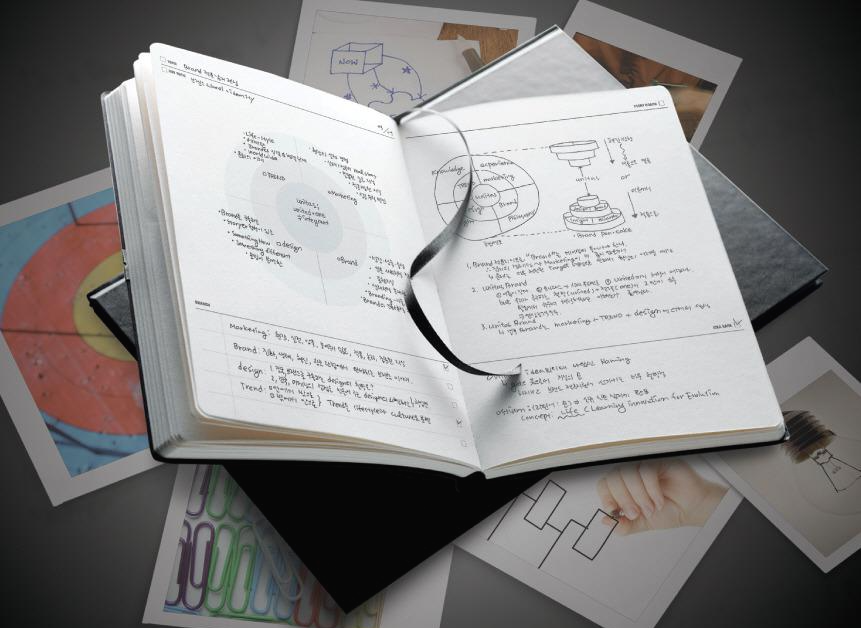 유니타스브랜드라는 매거북을 사람에 비유할 때 아버지라고 한다면 그에 맞는 어머니가 되어 줄 노트가 필요합니다. 그래서 저희 노트의 이름을 보면 프로세스빌리티(Processibility), 컨셉추얼라이제이션(Conceptualization), 이미지네이션(Imagination)등 무엇이 이루어지고 있음을 보여 주고 있습니다. 그 노트에는 기하학적으로 원이 하나 있거나 사사분면과 같은 것이 있기도 하고 박스만 있기도 합니다. 처음 보는 사람들은 괴상하게 여기지만 그 안에 있는 모든 내용은 브랜드를 만들 때 아이디어를 유도 분만할 수 있도록 만든 것입니다. 이 노트는 브랜드를 연구하는 우리만이 만들어 낼 수 있는 가치 있는 상품이라 믿고 있으며 우리만 표현할 수 있는 것입니다.