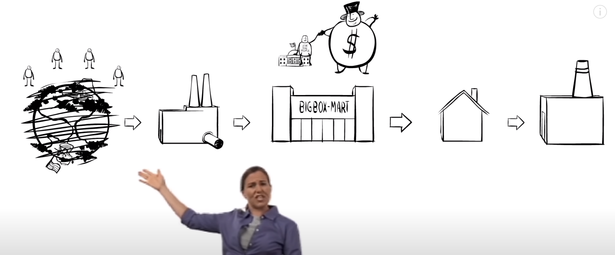 책《물건이야기》의 저자이자 동명의 다큐멘터리를 제작한 애니 레너드는 물건의 일생을 ‘추출→생산→유통→소비→ 폐기’의 다섯 단계로 구분했다.