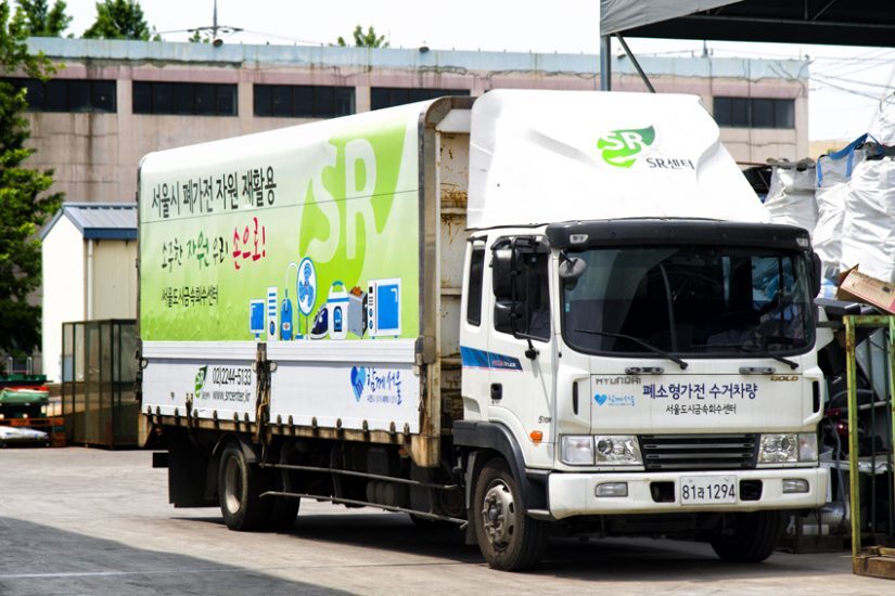 에코시티서울이 운행 중인 폐소형가전 수거 차량. 한 해 평균 약 2600톤 규모의 폐가전이 분해, 재활용된다(사진발췌 : 삼성뉴스룸)