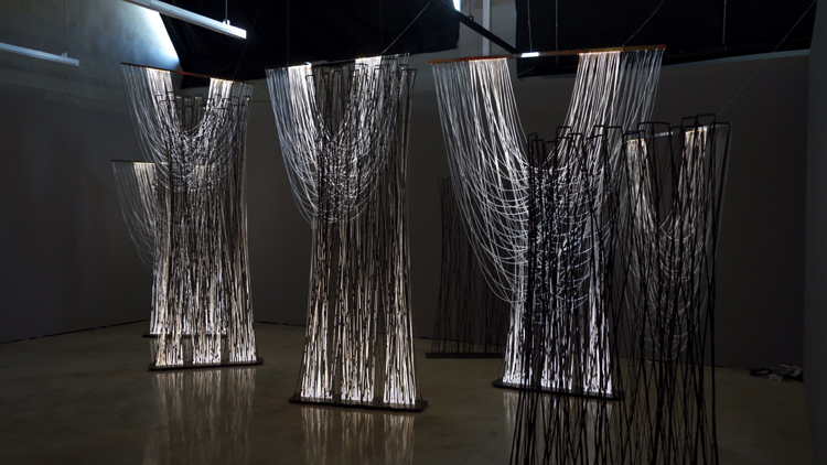 노일훈 저는 실험과 연구를 통해 제가 찾고 싶은 무언가를 찾아 나갑니다. 그게 저와 제 작품이죠. 서로 다른 결과물이 나와도 작품들 사이에는 보이지 않는 규칙과 공통점이 있습니다. 그리고 라틴어로 이름을 짓고, 그 안에 의도를 담습니다. 제 작품의 라틴어 이름은 Rami(나뭇가지), *Nodus(매듭), Luno(곡선)이죠. 아시다시피 라틴어는 죽은 언어입니다. 그렇지만 기억에서는 영원히 그대로의 모습으로 존재하는 단어죠. 영어, 이탈리아어, 프랑스어로 작품명을 쓰지 않는 것은 언어의 중립성을 위해서입니다.