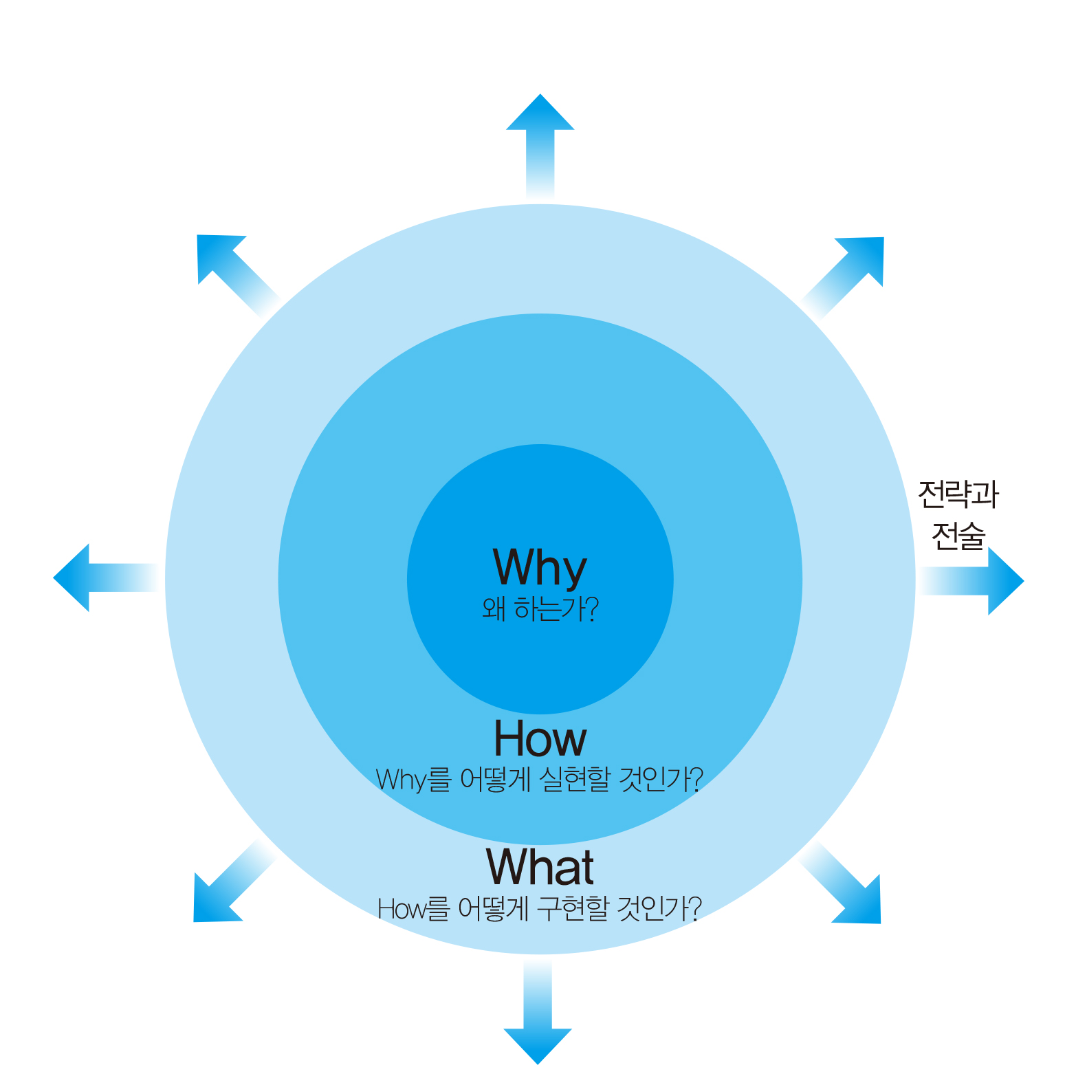 * 나의 창업에서 Why–How–What 찾기(Why wheel) 1) Why : 당신이 창업을 하려는 이유 그것은 새로운 문제의식에서 출발한 것일 수도, 기존의 것에 대안이 되는 것일 수도, 아니면 오로지 당신의 신념에 관한 것일 수도 있다. 단, 그것이 앞서 설명한 인간의 욕구 Big 3에 기반한 욕구를 해결할 수 있는가를 점검해 보기 바란다.