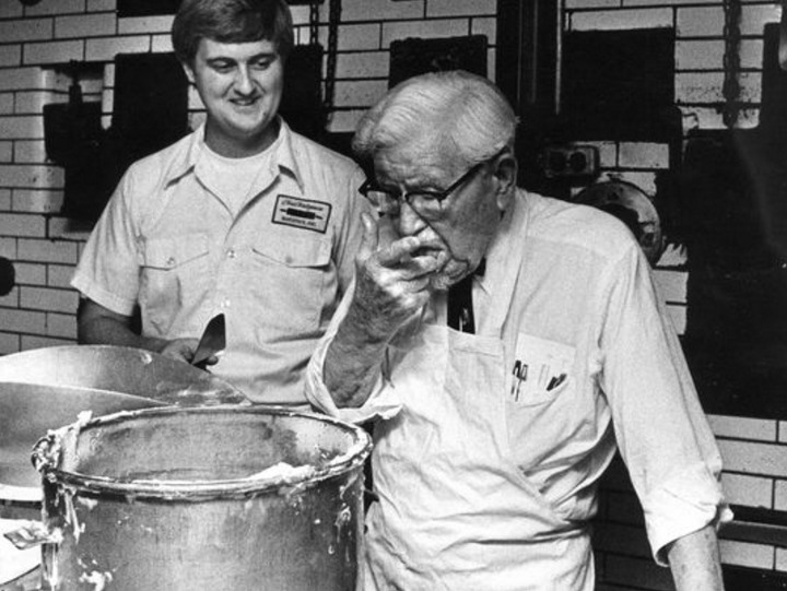 이와 비슷한 또 다른 사례도 있다. 1950년 초반, 피트 하먼이라는 사람이 미국 솔트레이크시티에서 패밀리 레스토랑을 운영하고 있었다. 뭔가 맛있는 메뉴를 찾고 있던 그는 1952년 시카고에서 62세의 할아버지 커넬 샌더스를 만났다. 샌더스는 음식을 잘 만들었고 직접 솔트레이크시티에 와서 닭요리를 만들어 주었다. 샌더스는 자신의 레서피를 하먼에게 알려주었고 하먼은 자신의 레스토랑에서 샌더스가 전수해 준 맛있는 닭고기 음식을 팔기 시작했다.