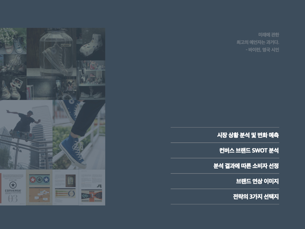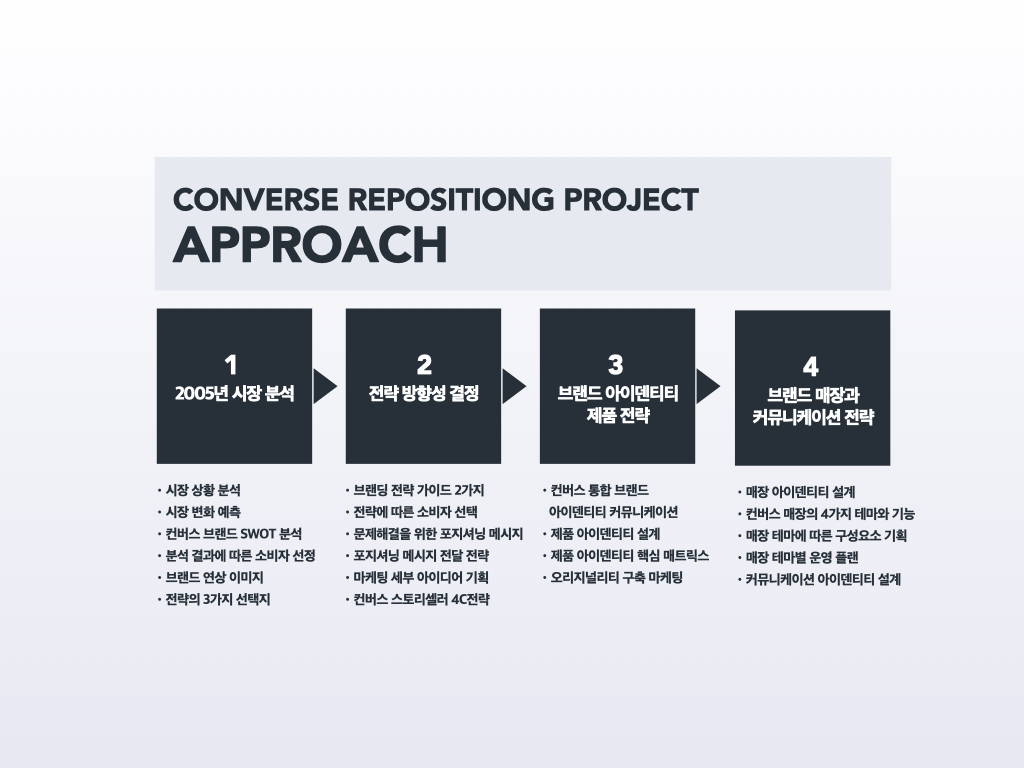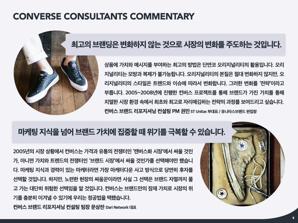 이제 컨버스 리뉴얼 실전 프로젝트 다큐멘터리를 살펴보자.