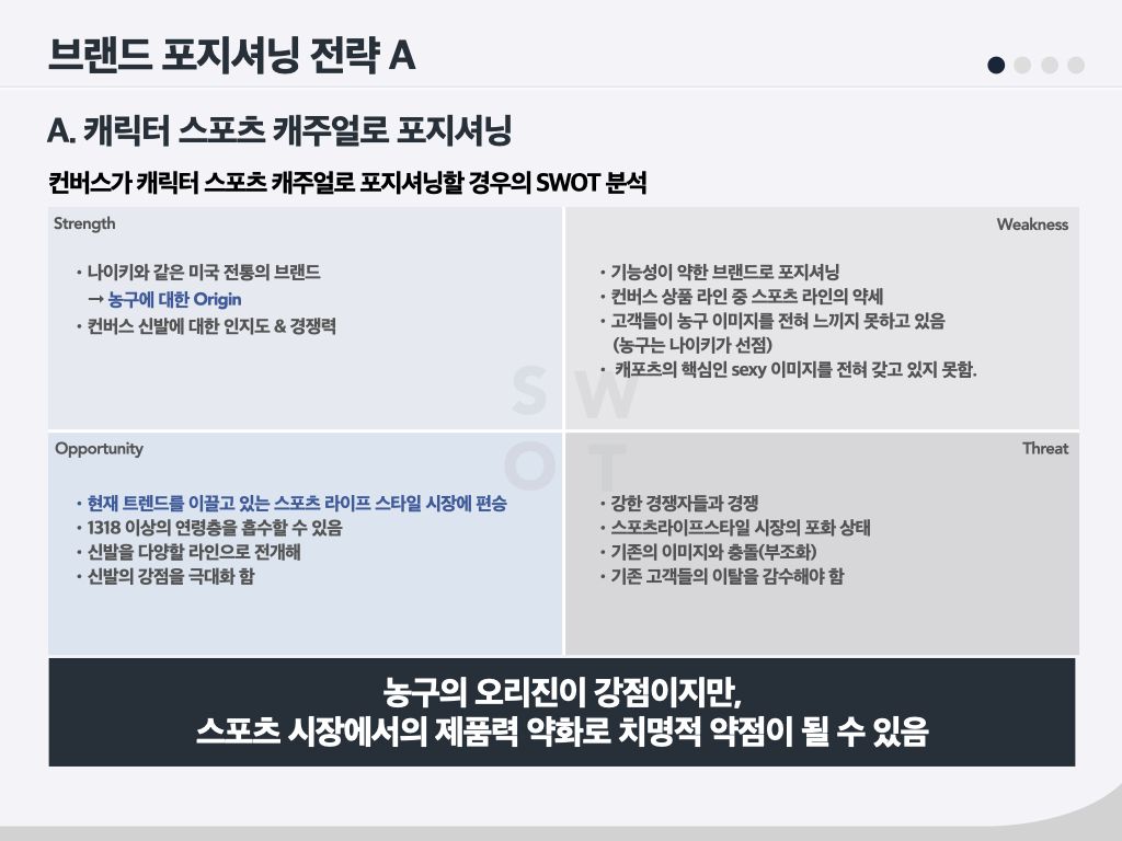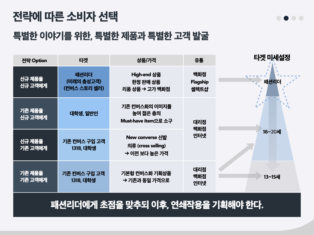 컨버스에서 바꾸어야 할 것 : 고객들. 나이 들어가는 고객들과 같이 늙어가면 안 된다.