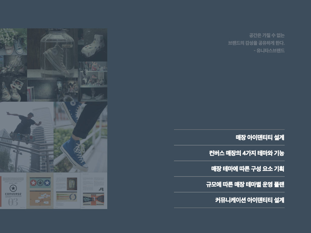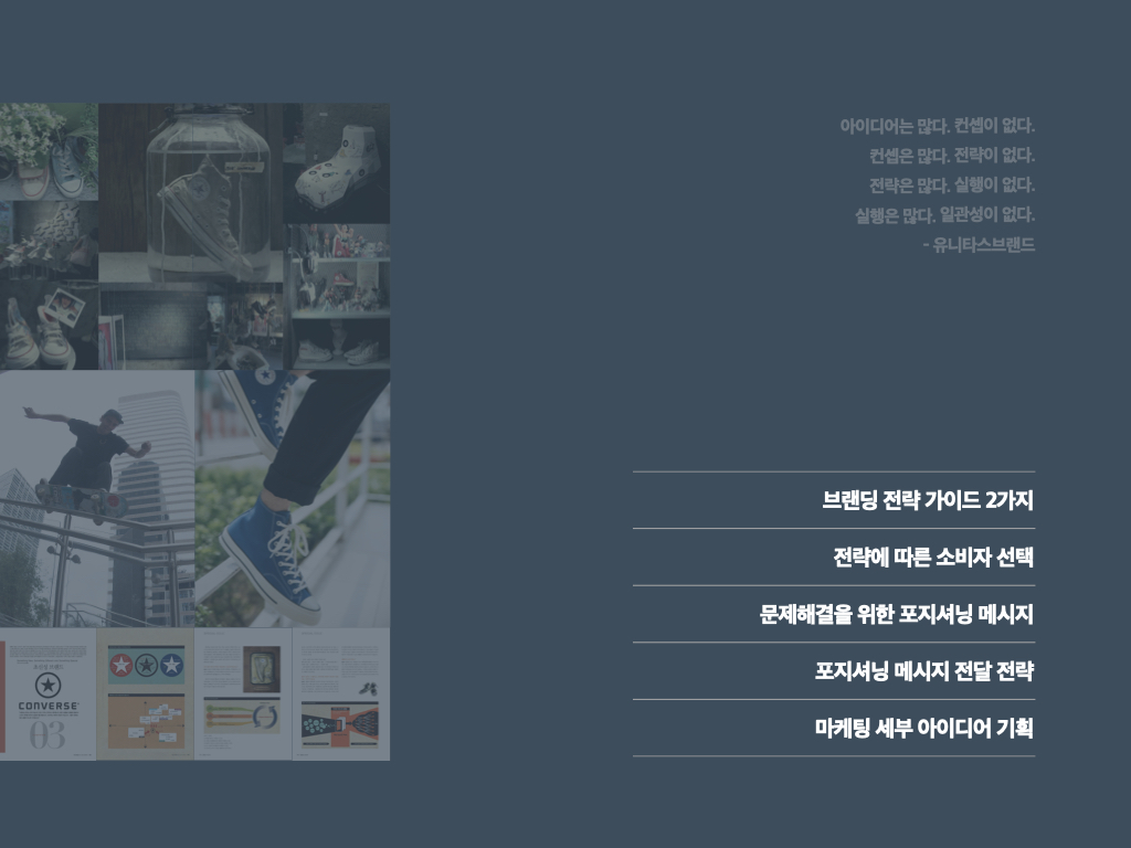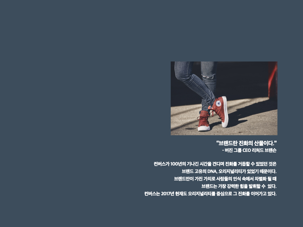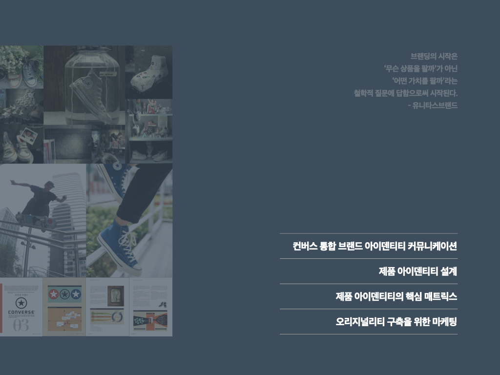 이제 컨버스 리뉴얼 실전 프로젝트 다큐멘터리를 살펴보자.