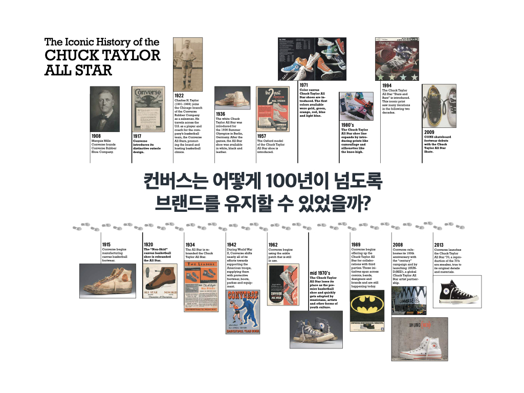 지금 우리가 신고 있는 있는 컨버스 신발은 1908년에 론칭해서 100년 넘게 시장에 존재하고 있는 브랜드다.