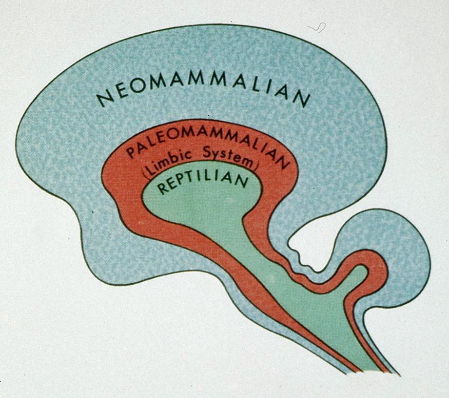 *파충류의 뇌 폴 맥린에 의해 제시된 진화학적 관점에서 본 인간의 뇌 구조 이론인 삼위일체 뇌(Tri- une Brain) 이론에 따르면, 인간에게는 3개의 뇌가 있다. 고등 포유류의 진화 마지막 단계에서 발달하는 대뇌피질은 이성을 관장하고, 그 아래에 ‘포유류의 오래된 뇌’로 알려진 대뇌변연계는 감성을 담당한다. 그리고 그 아래에 가장 먼저 발달하며 인간의 생존과 관련된 원초적인 부분을 관장하는 곳이 바로 파충류의 뇌다. 파충류와 생김새가 닮았다고 해서 이런 이름이 붙었다. 사람들은 이성보다 감성에 더 기대어 선택하는데, 라파이유 박사는 그것보다 더 결정적인 것은 파충류의 뇌와 관련된 선택이라고 말한다.
