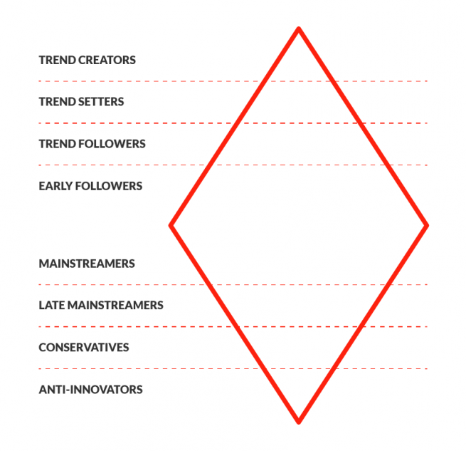 헨릭 베일 가드(Henrik Vejlgaard) 트렌드란 기본적으로 스타일과 취향의 변화 과정이라 할 수 있다. 즉 트렌드 세터들이 뭔가 새롭고 혁신적인 것을 수용하는 것을 시작으로 하여 점차 많은 사람들이 그것을 모방해 가는 전체적인 프로세스다.