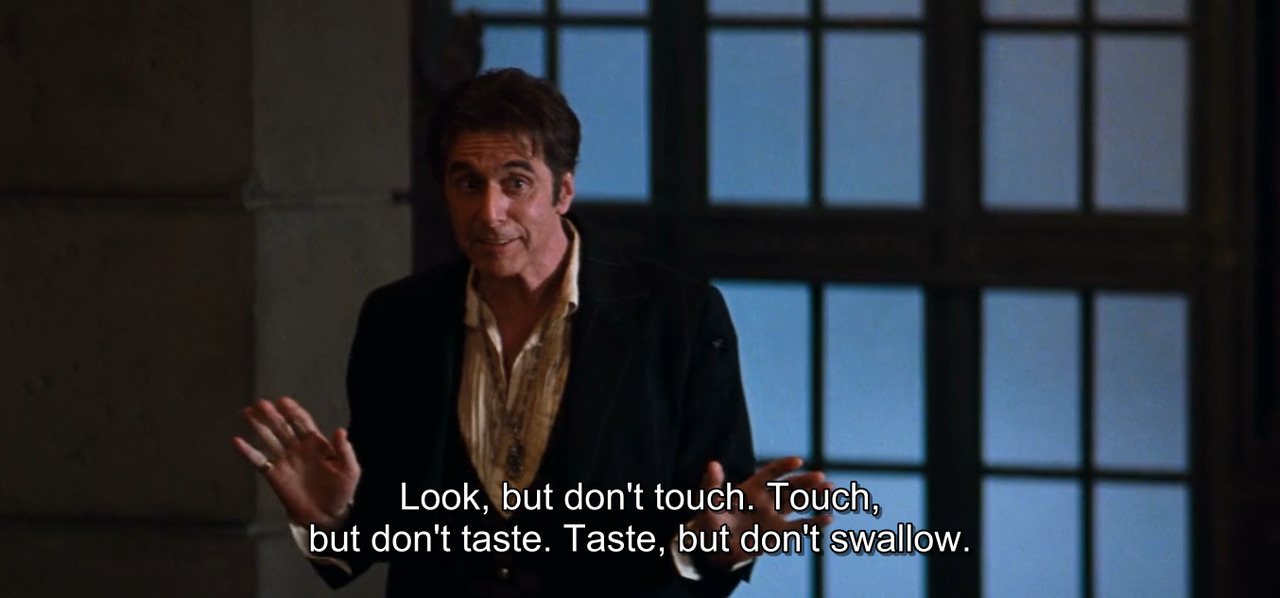 “Vanity, definitely my favorite sin.” (허영은 내가 제일 좋아하는 죄(대본 번역은 기호품)야.)
