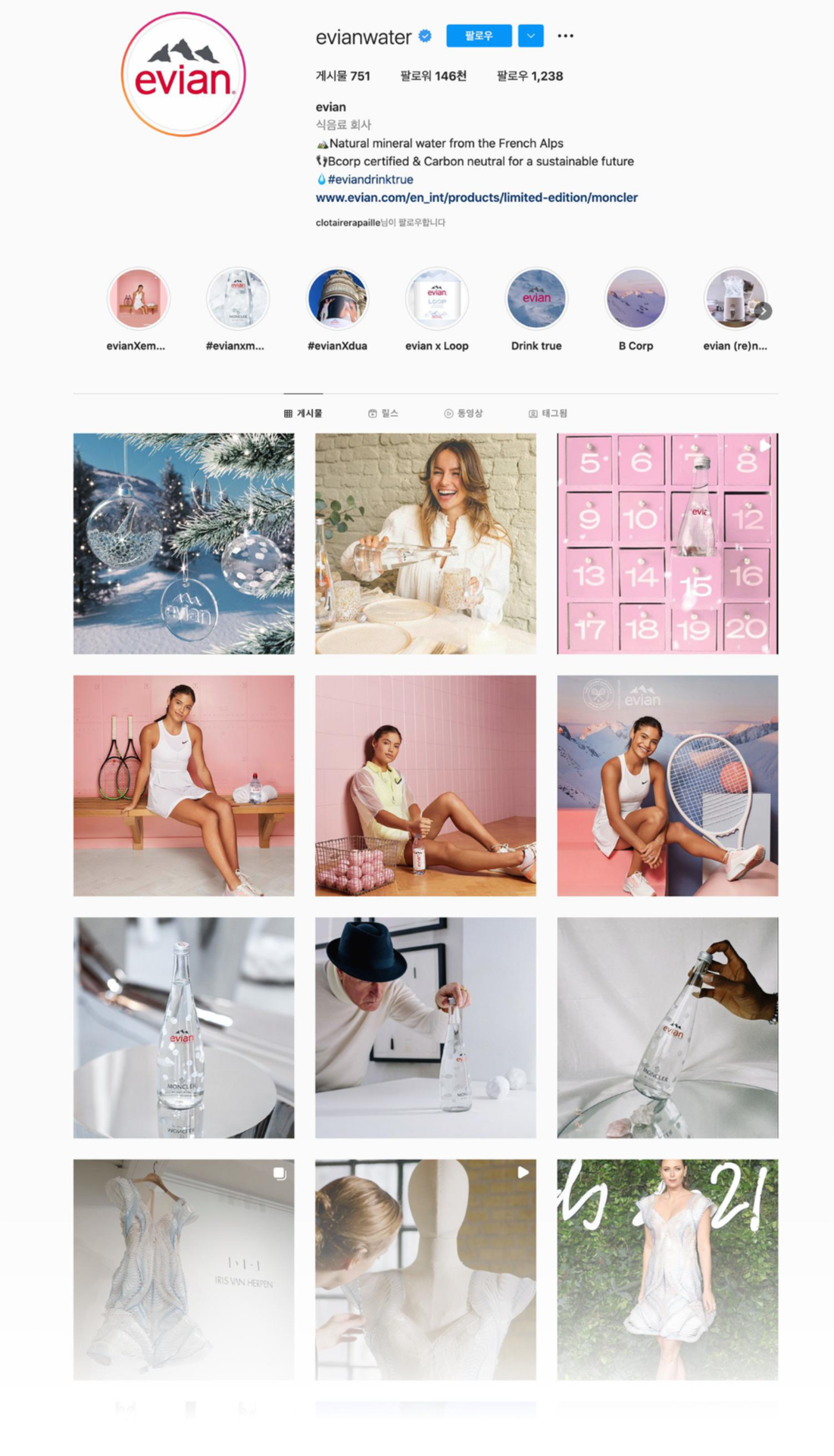 달력에서나 보았던 알프스 산맥의 맑은 시냇물은 ‘에비앙’이라는 브랜드를 달고 157개국의 물 시장을 명품 물로서 주도 하고 있다. 무색, 무취, 무미. 정말 아무 맛도 나지 않는 물. 마케팅 용어로 말한다면 상품으로써는 도저히 차별화를 할 수 없는 그저 ‘물’에 불과한 ‘물’이다. 하지만 에비앙을 물로 보면 안 된다. 그들이 외치는 캠페인은 단지 칼슘과 미네랄이 풍부한 속성만을 말하지 않는다. 에비앙은 물을 통해서 아름다움을 말한다. 시간을 내 피트니스센터 카페에 앉아 누가 어떤 물을 마시는지 관찰하면 재미있는 현상을 한 가지 볼 수 있다. 정말로 부단한 노력으로 몸매를 예술로 만든 사람들은 특정 브랜드의 물을 마신다.