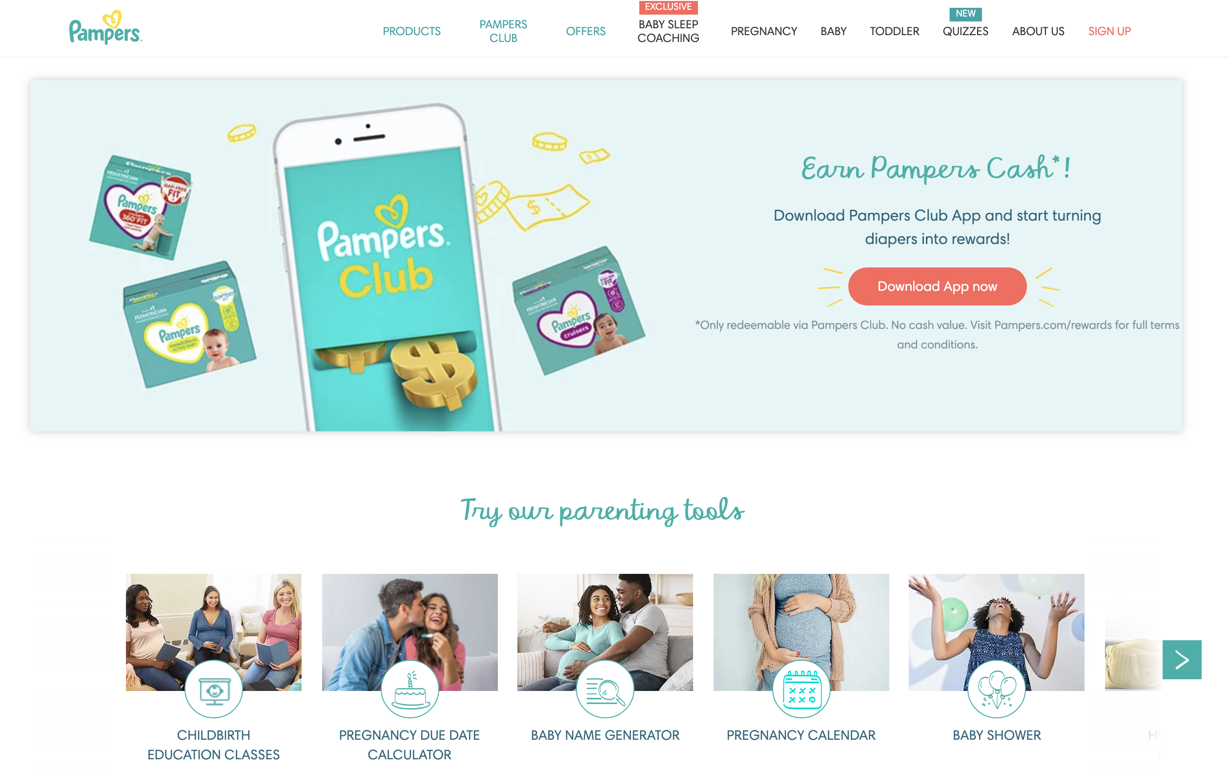 팸퍼스는 유아용 제품을 파는 미국 회사로 P&G에 속해 있는 브랜드 중 하나이다. 팸퍼스는 5가지 종류의 기저귀를 9개의 다른 사이즈로 판매하고 있으며, 4가지 종류의 배변 훈련용 및 수영장용 기저귀, 유아의 피부타입에 맞게 사용가능한 다양한 기저귀용 물티슈를 제공하고 있다.