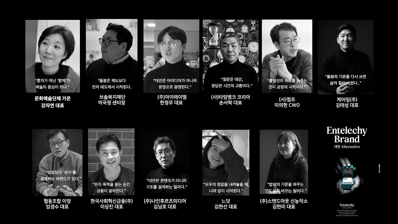 『엔텔러키 브랜드』는 Vol.1에서 ‘목적(Purpose)’, Vol.2에서 ‘브랜드십(Brandship)’, Vol.3에서 ‘휴먼브랜드(1인 기업가)’를 다루며 “왜 사는가, 누구와 함께 사는가, 나는 누구인가”라는 본질적 질문을 던져 왔습니다. 이번 Vol.4의 주제는 ‘대안(Alternative)’입니다.