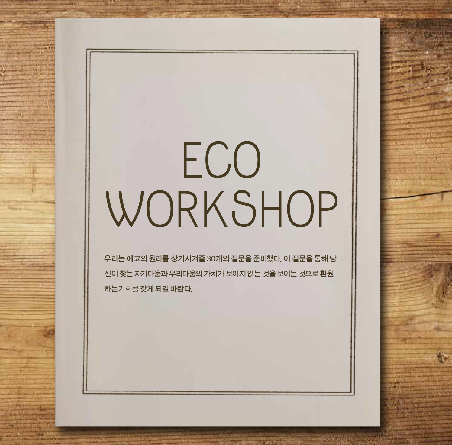 우리는 에코의 원리를 상기시켜줄 30개의 질문을 준비했다. 이 질문을 통해 당신이 찾는 자기다움과 우리다움의 가치가 보이지 않는 것을 보이는 것으로 환원하는 기회를 갖게 되길 바란다.