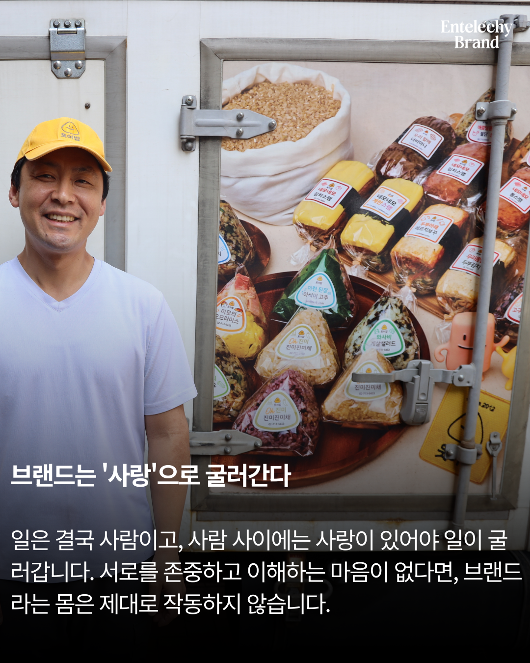 골목대학 수업이 있던 날, 그는 새벽 2시부터 주먹밥을 만들고 출근 시간대가 끝난 뒤에야 수업에 들어왔다. 지각은 잦았지만, 그 누구보다 진지했다. 그래서 오히려 내가 미안했다. 그는 자기 브랜드가 진짜가 될 것이라고 굳게 믿었기 때문이다. 브랜드 플랫폼에 웃어밥을 적용하며 기뻐하던 그의 얼굴을 볼 때면, 나는 혹시 ‘브랜드로 희망고문을 하는 것은 아닐까?’라는 마음이 들기도 했다.